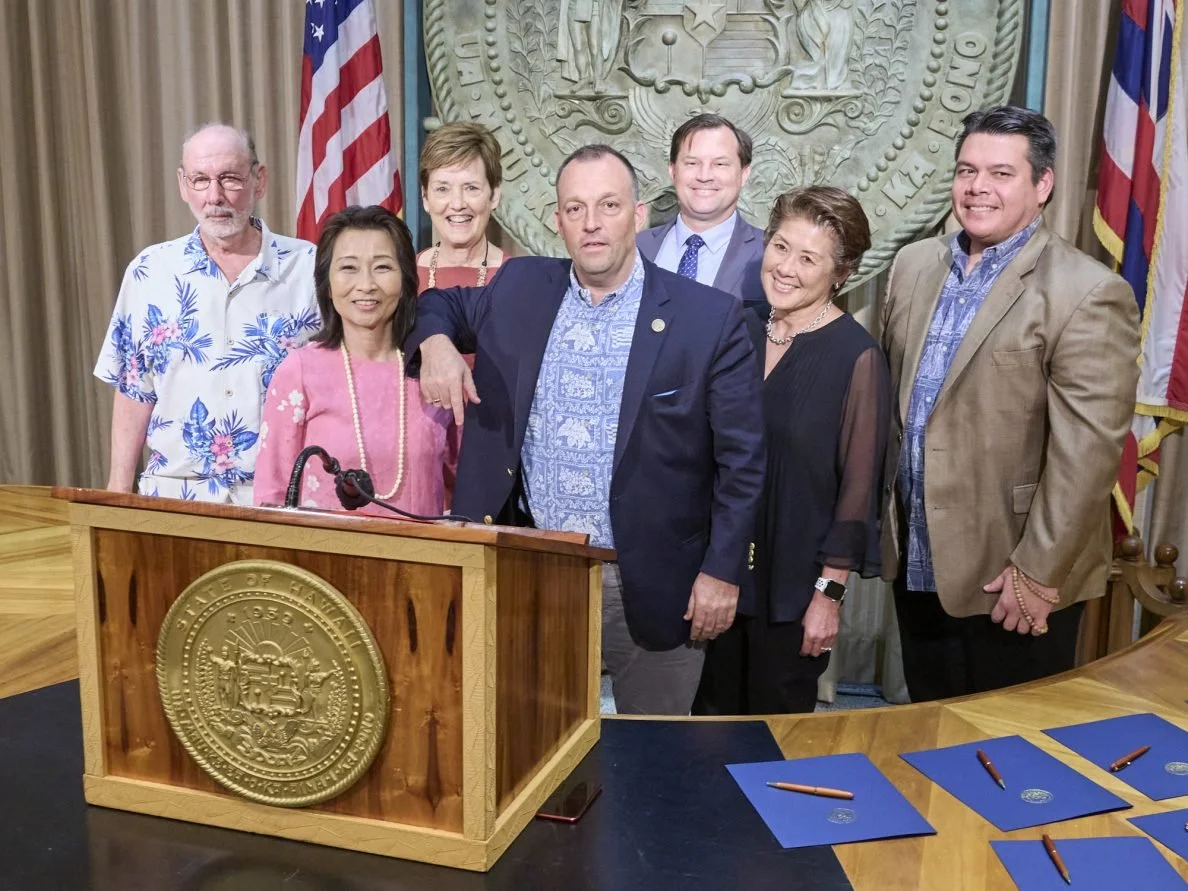House Speaker Scott Saiki was on hand for the bill signings. Green said Senate President Ron Kouchi had a family obligation.